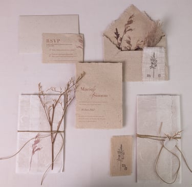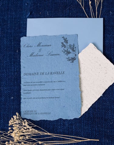 Découvrez nos différents projets de papier artisanal fait main et avec amour pour vos faire-part et invitations de mariages, baptêmes, baby shower...