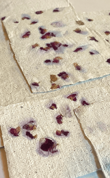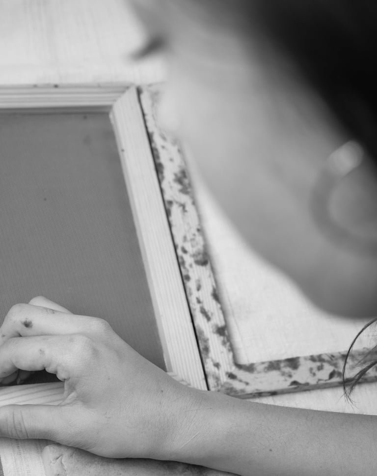 Tout est fait maison : depuis la recherche des matières premières, jusqu’à la fabrication du papier artisanal.